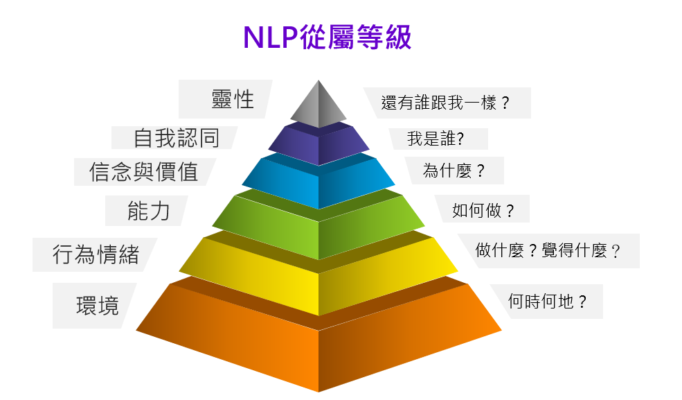 Robert Dilts將其分成六個,各個階層就像金字塔般層層堆疊。